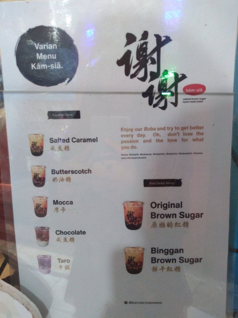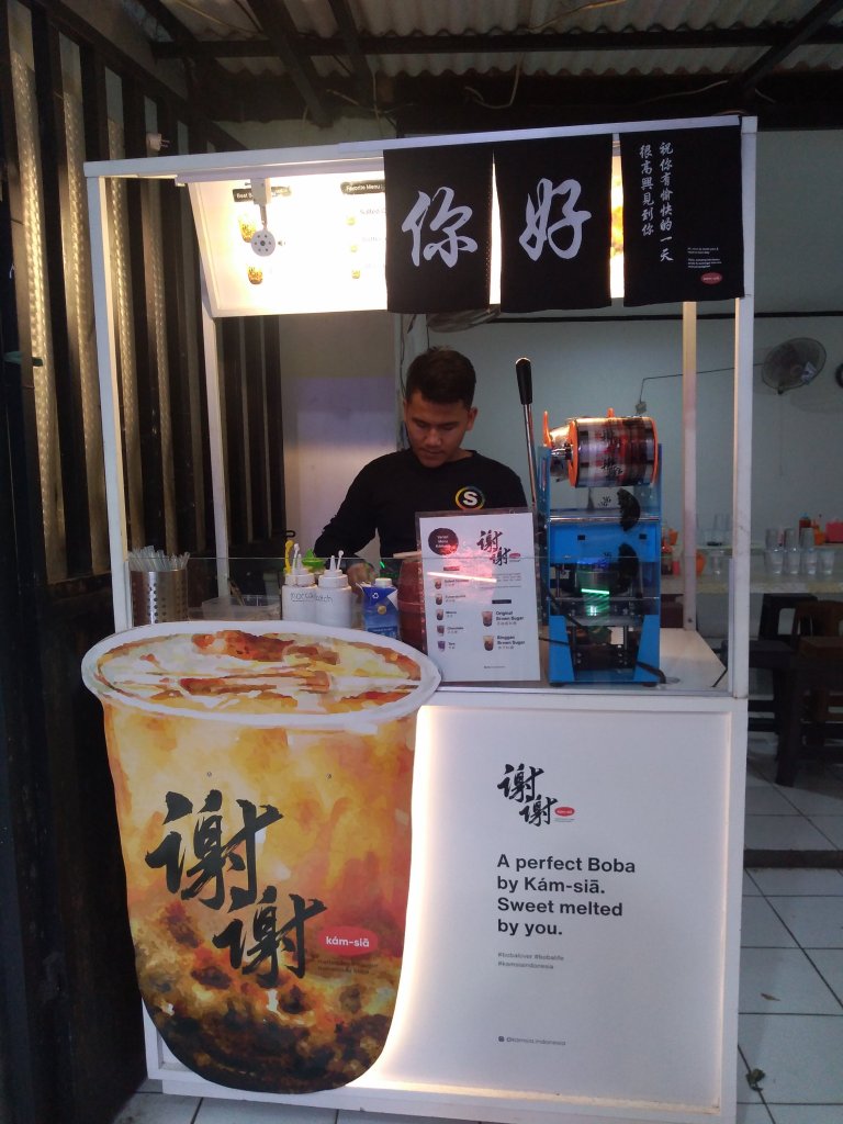 Dan kata kám-siā ini di pakai oleh gerai boba yang baru-baru saja launching di Bogor loh gaiss